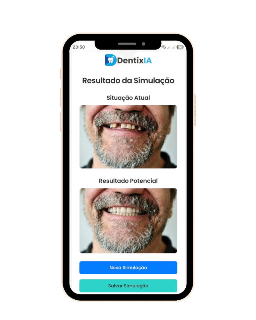 Enquanto você mostra fotos de outros pacientes, ele tenta imaginar o próprio sorriso.